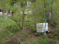 当初考えていた設置場所を変更し、巣箱は分蜂蜂球を作った栗の木の真下に設置することにした。